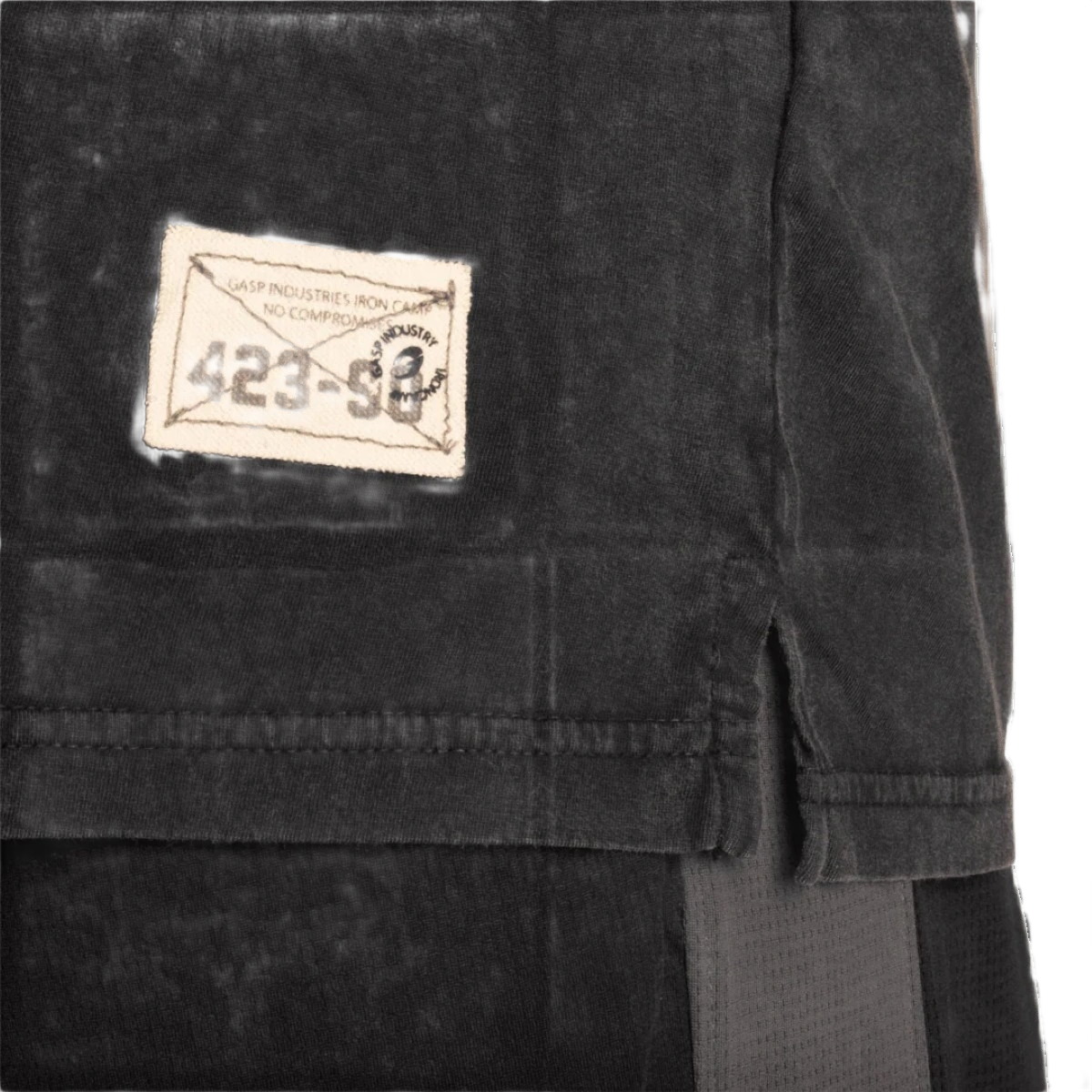 • Features: GASP print on chest, raw cut edges