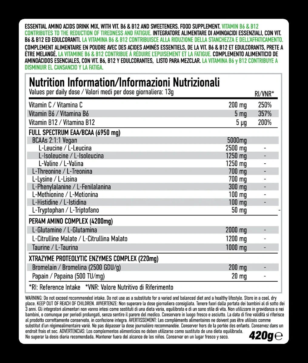 EAA XTRA delivers a full spectrum essential amino blend including 5gms of fermented BCAAs in every serving, and is boosted with the unique addition of Vegan proteolytic enzymes and Glutamine to support a healthy gut for improved amino digestion and nutrient absorption.